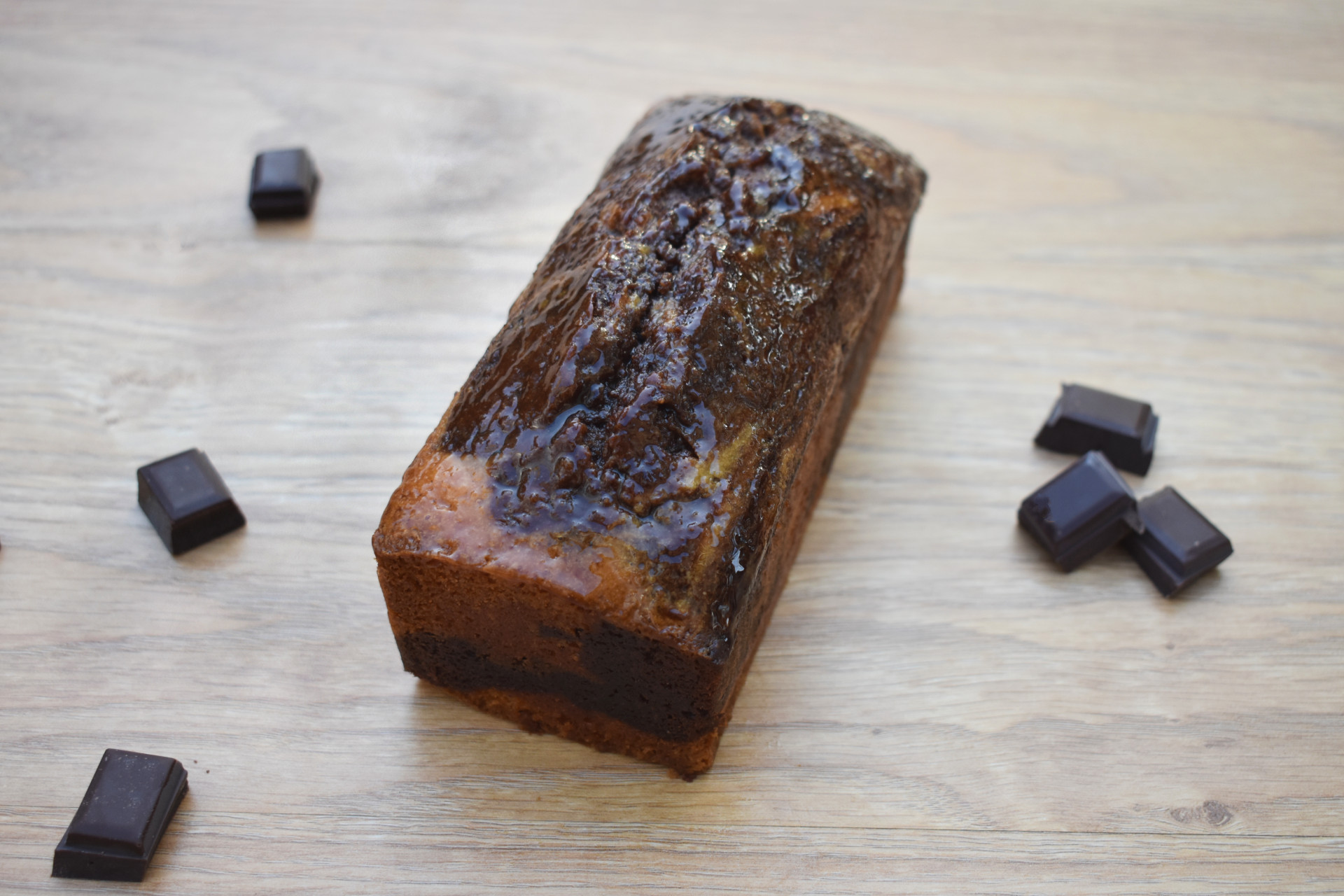 Un grand classique gourmand, notre cake marbré allie la douceur moelleuse de la pâte vanille à la richesse intense du chocolat noir, parfaitement équilibrée pour un moment de plaisir authentique.