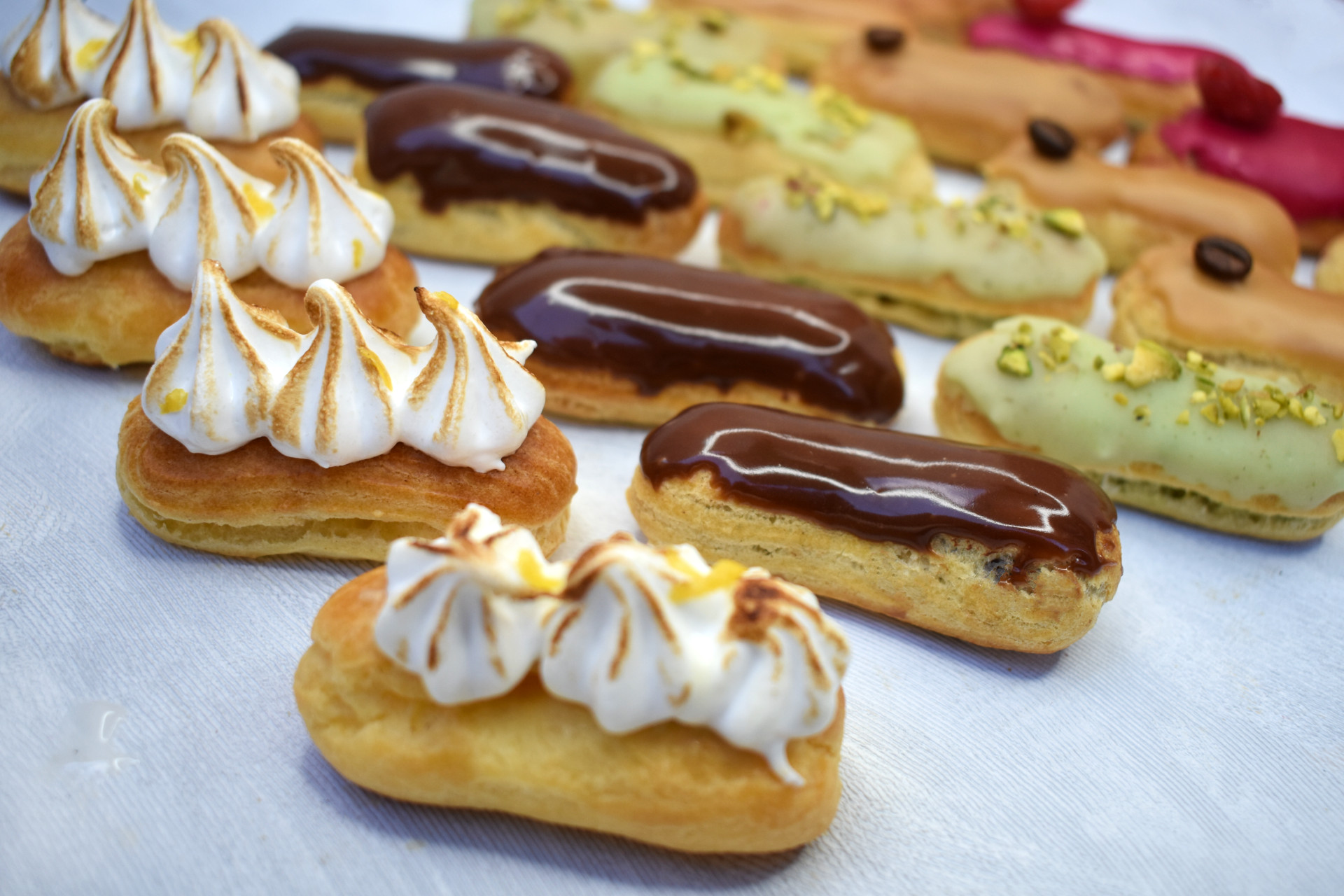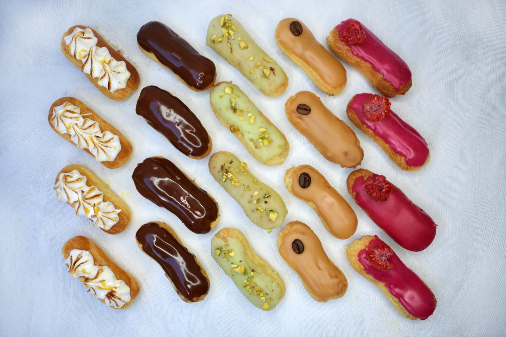 Assortiment de mini éclairs aux saveurs estivales, frais et équilibrés.